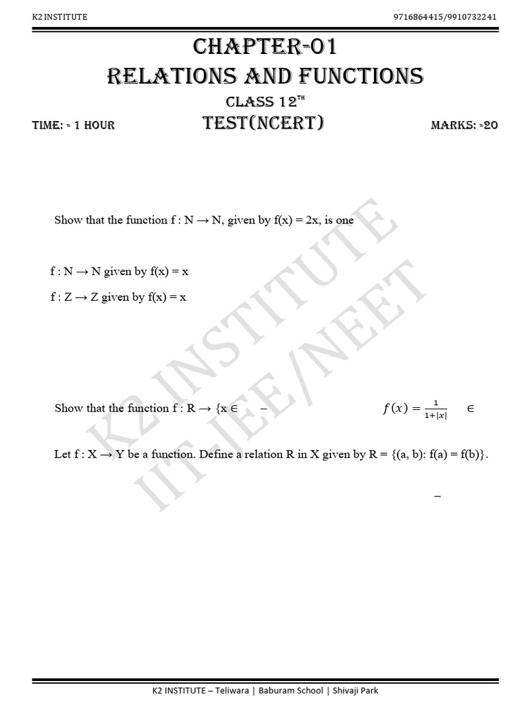 Q8. Let f : X → Y be a function. Define a relation R in X given by R = {(a, b): f(a) = f(b)}.