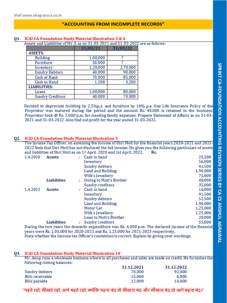 Q1. ICAI CA-Foundation Study Material Illustration 3 & 4
