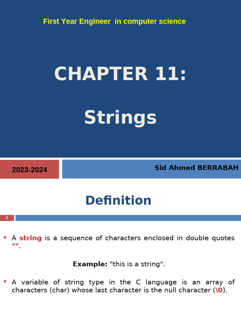 characters. Arrays of strings are 2D arrays.