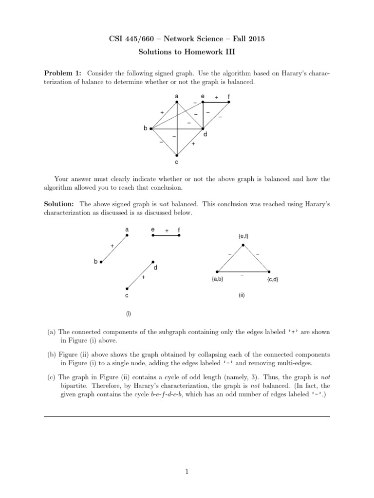 Problem 1: Consider the following signed graph. Use the algorithm based on Harary’s charac-