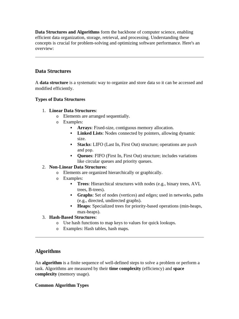 Data Structures and Algorithms form the backbone of computer science, enabling