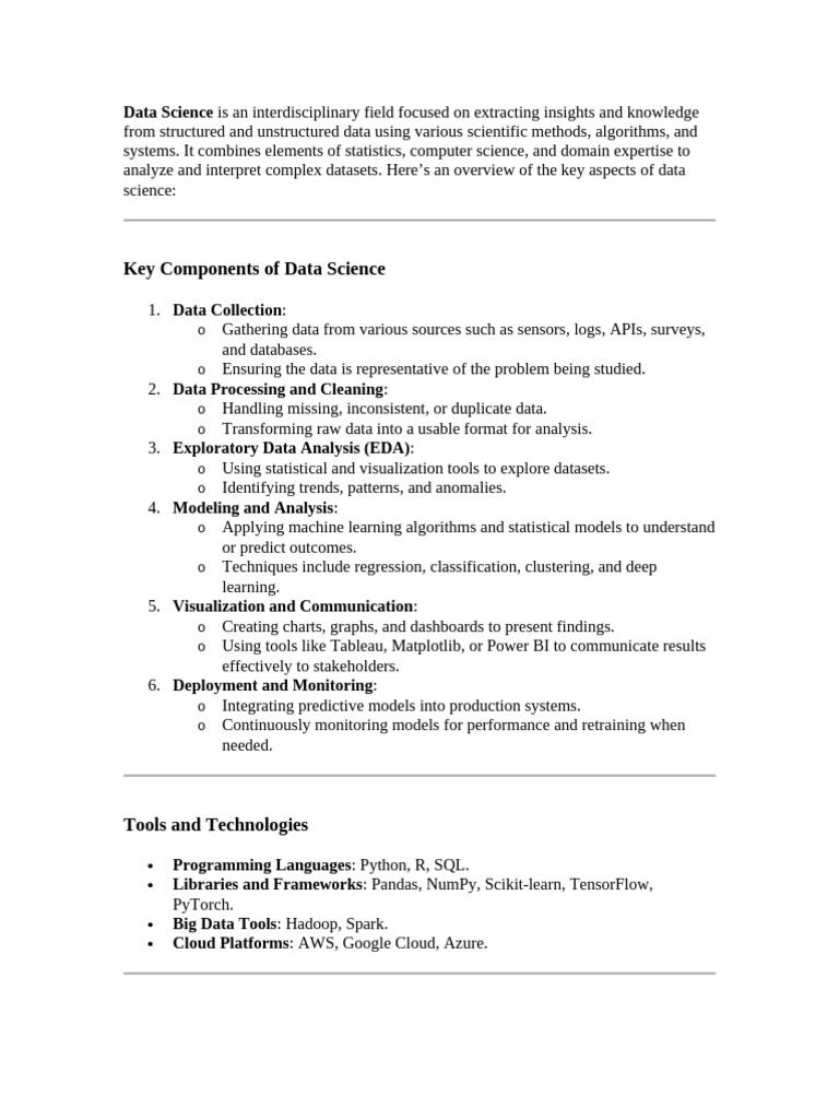 analyze and interpret complex datasets. Here’s an overview of the key aspects of data