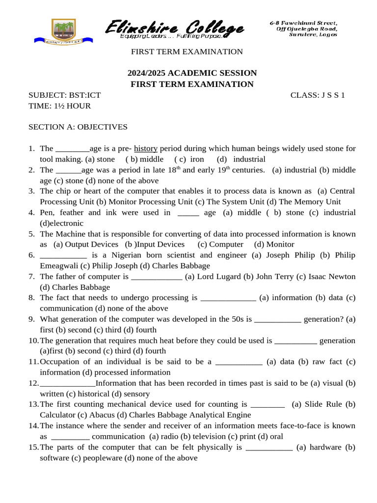 JSS ICT First Term Exam 2024/2025