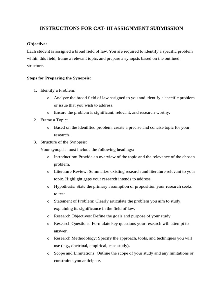 INSTRUCTIONS FOR CAT- III ASSIGNMENT SUBMISSION