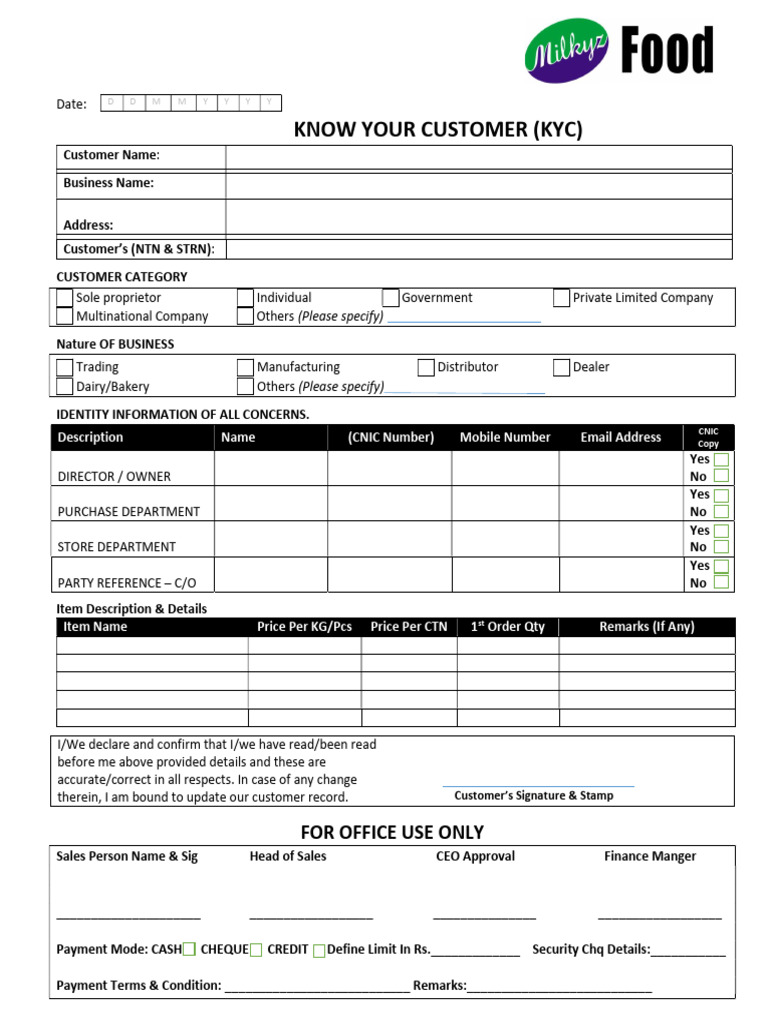 therein, I am bound to update our customer record. Customer’s Signature & Stamp