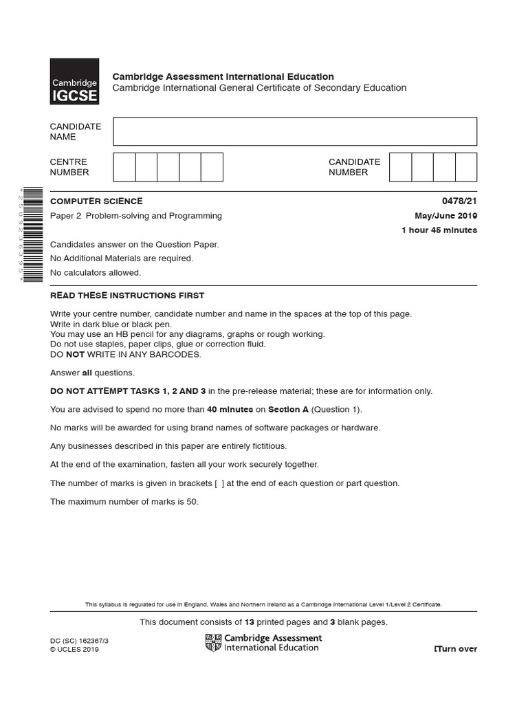 DO NOT ATTEMPT TASKS 1, 2 AND 3 in the pre-release material; these are for information only.