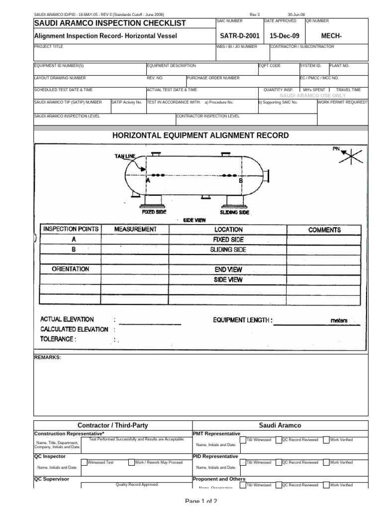 Alignment Inspection Record- Horizontal Vessel SATR-D-2001 15-Dec-09 MECH-