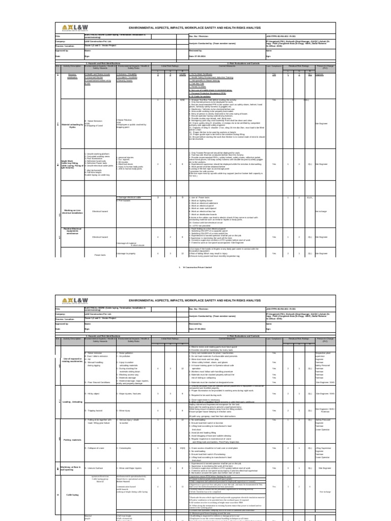 S - Uneven Surface S - Minor and Major Injuries 4 2 8 3. Cummins supervisor confirms LOTO system before start of work Yes 3 1 3(L) Site Engineer