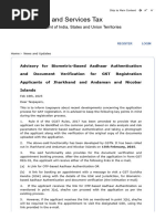 Advisory for Biometric-Based Aadhaar Authentication and Document Verification for GST
