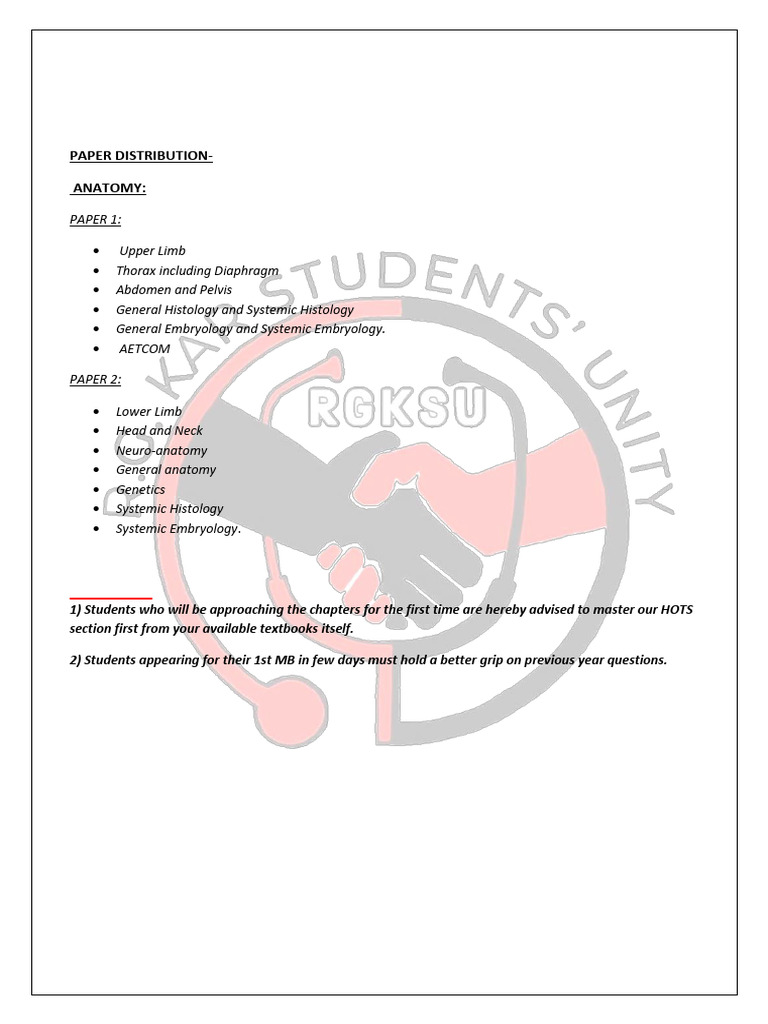 2) Students appearing for their 1st MB in few days must hold a better grip on previous year questions.
