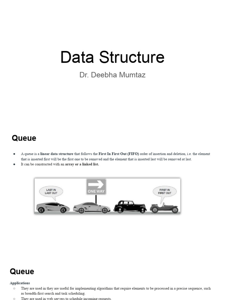● The operations are performed based on FIFO (First In First Out) principle. It is also