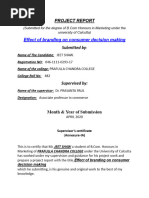 impact of brand on influencing consumers to purchase a product. The aim of the project is to