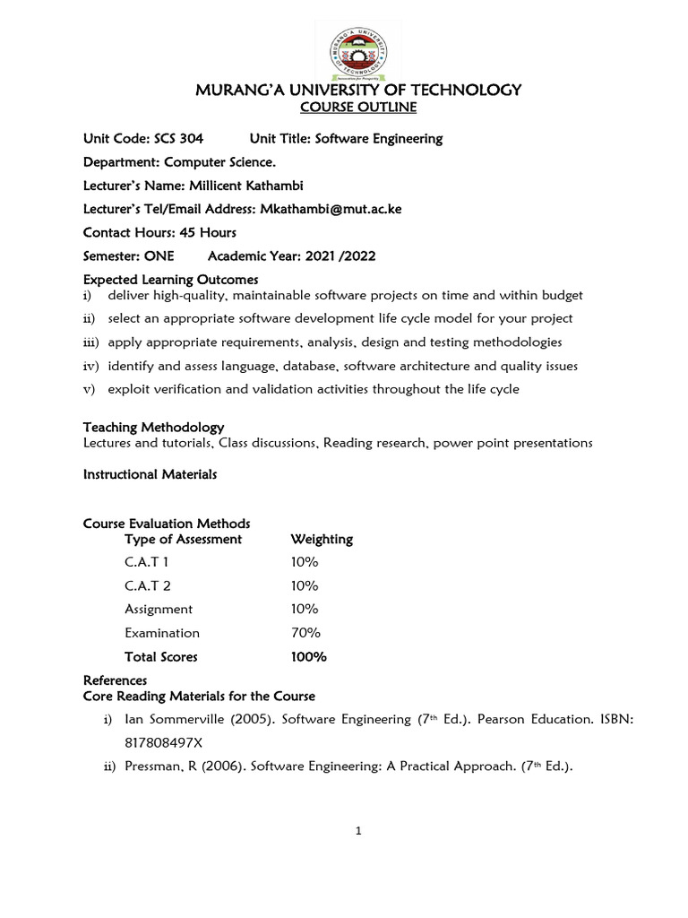 Unit Code: SCS 304 Unit Title: Software Engineering