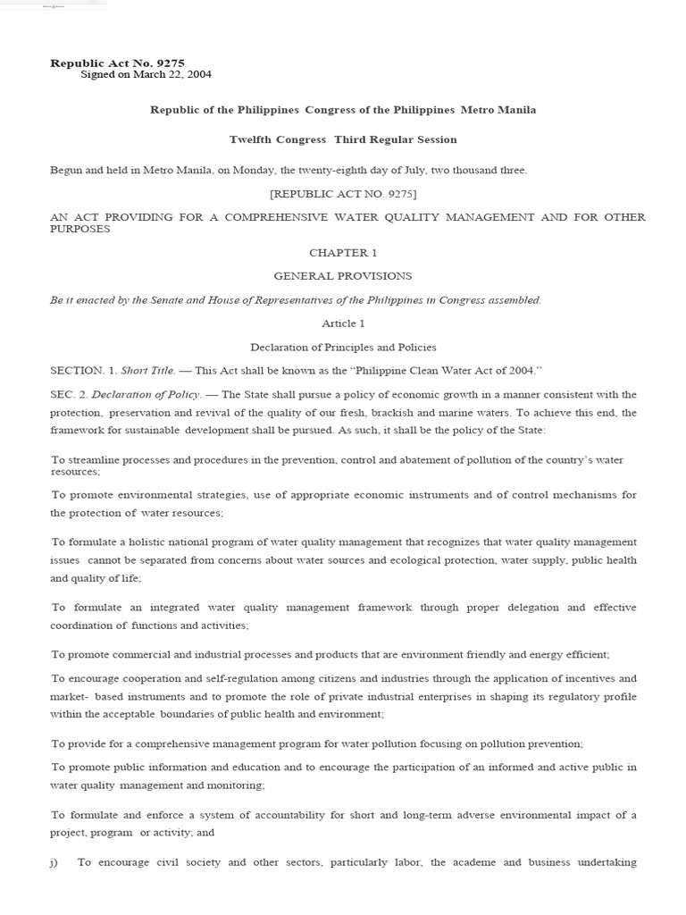 Philippine Clean Water Act Overview