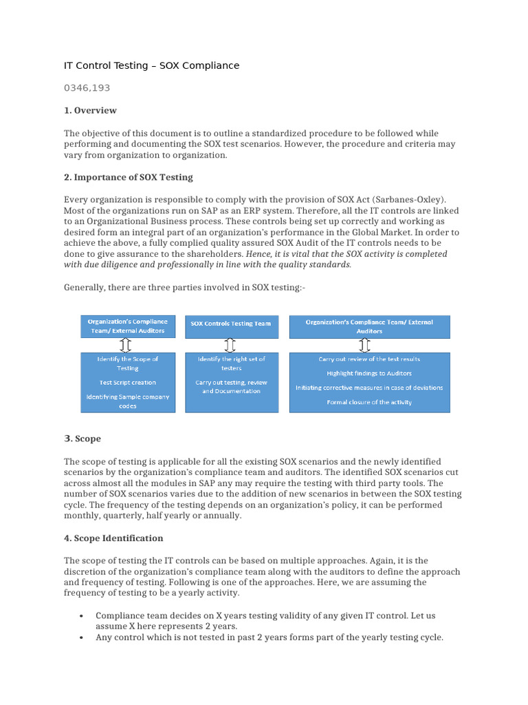 The scope of testing is applicable for all the existing SOX scenarios and the newly identified
