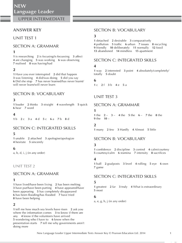 New Language Leader Upper Intermediate Tests Answer Key © Pearson Education Ltd. 2014 2