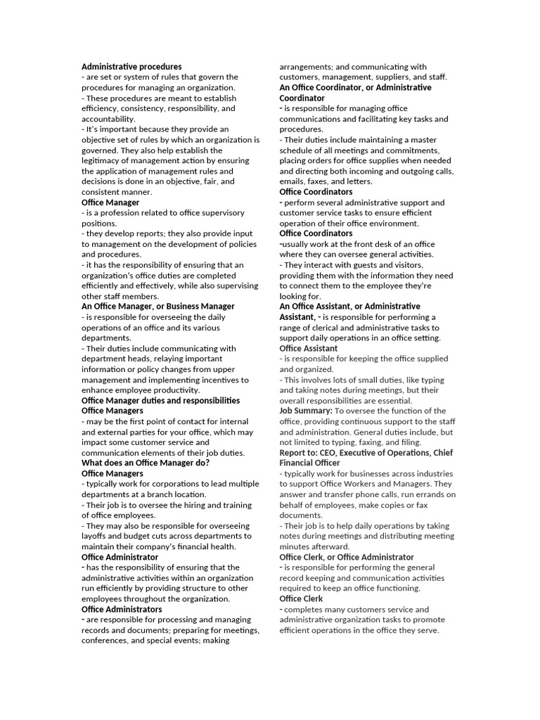 procedures for managing an organization. An Office Coordinator, or Administrative