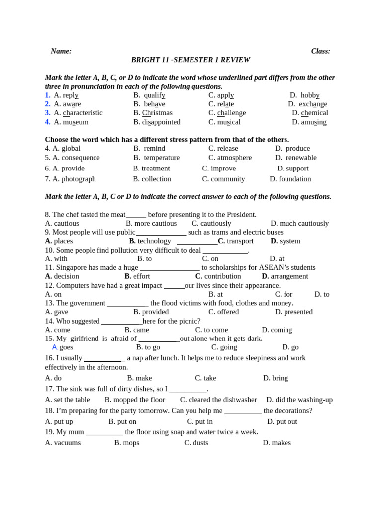 BRIGHT 11 -SEMESTER 1 REVIEW