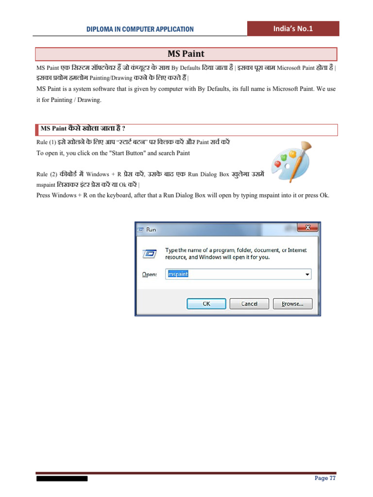 MS Paint एक कसस्टम सॉफ्टवेयर हैं जो कंप्यूटर के सार् By Defaults कदया जाता है | इसका पूरा नाम Microsoft Paint होता है |