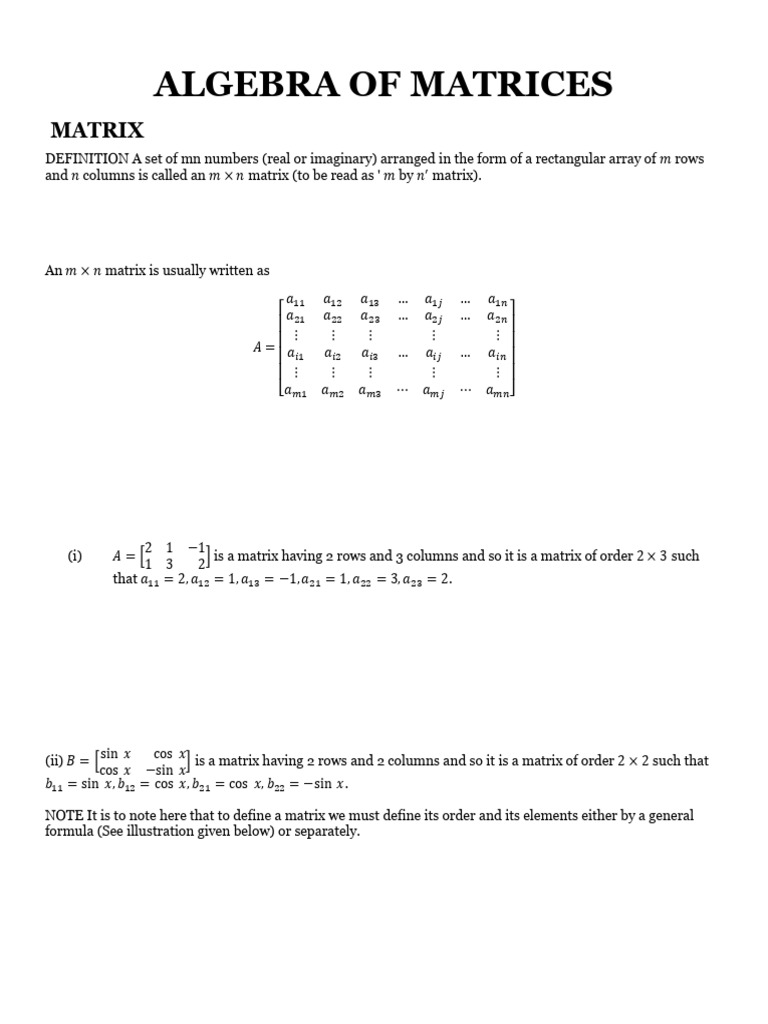 NOTE It is to note here that to define a matrix we must define its order and its elements either by a general