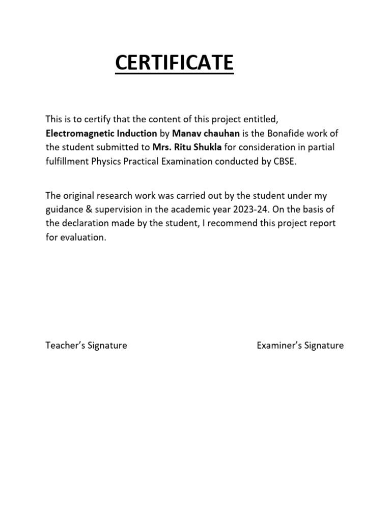 Electromagnetic Induction by Manav chauhan is the Bonafide work of
