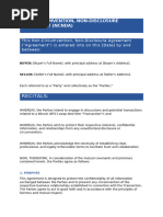 This Mutual Non-Disclosure/Non-Circumvention Agreement (the Agreement) is entered into as of the DATE (the Effective Date) by and between XVPillars, LLC (hereinafter referred to as Seller) with a principal place of business at 9350 South 150 East, Suite 740, Sandy, UT, 84070, and x x x (x x x x , hereinafter referred to as Agent) with a principal place of business at x x x . All entities previously identified in this paragraph shall be collectively referred to hereinafter as the Parties. WHEREAS, the Parties desire to exchange confidential and proprietary information relating to each others businesses for purposes of discussing and possibly entering into a business transaction or transactions, and/or a strategic business relationship; and WHEREAS, the Parties desire to set forth their agreement to treat such information as confidential and proprietary in accordance with the terms and conditions hereof; NOW, THEREFORE, this Agreement made and entered into on this date shall obligate both Parties and their partners, associates, employers, employees, affiliates, subsidiaries, parent companies, representatives, successors, clients, nominees and assigns to the mutual promises, terms and conditions contained herein: