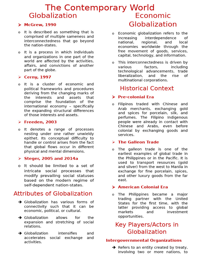o It is described as something that is o Economic globalization refers to the