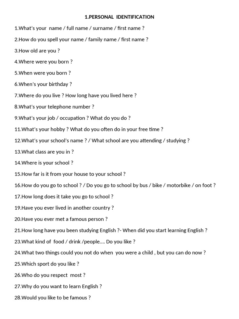 [Link]’s your name / full name / surname / first name ?
