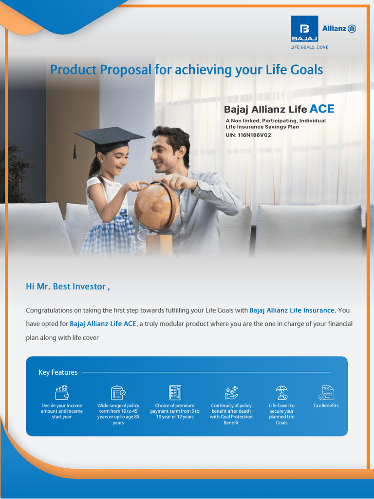 Name of the Prospect/ Policyholder: Best Investor Name of the Product: Bajaj Allianz Life ACE