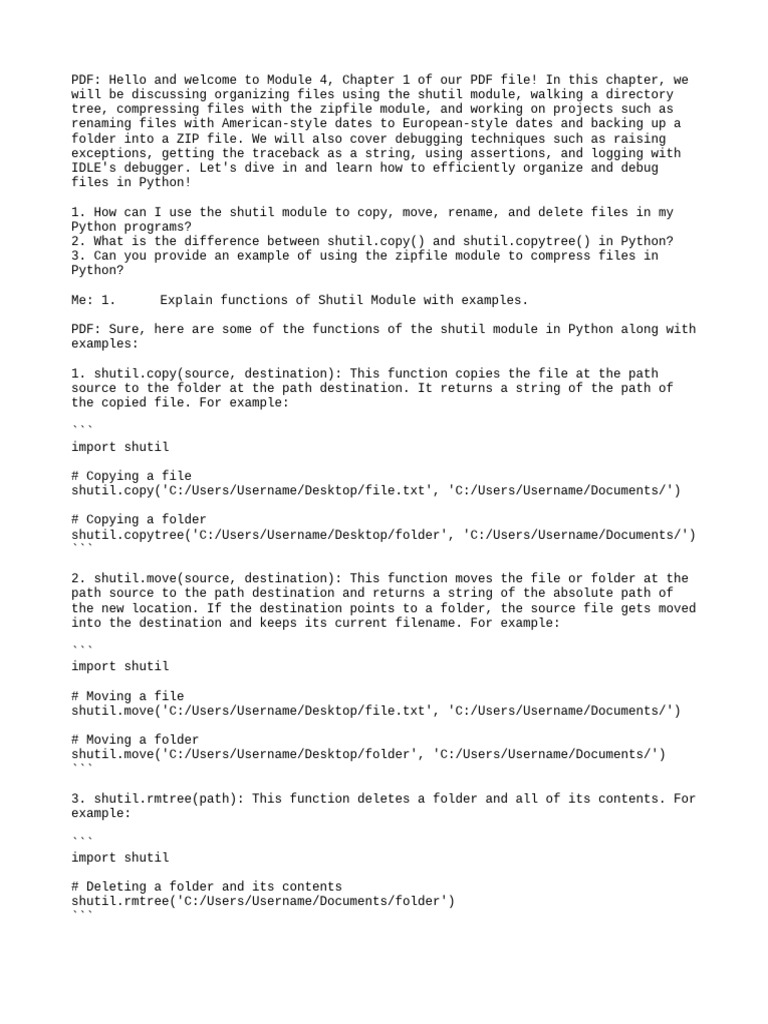 PDF: Sure, here are some of the functions of the shutil module in Python along with