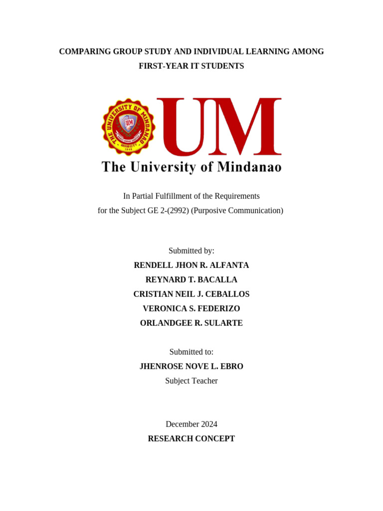effectiveness of group study and personal learning among first-year IT students, this research can