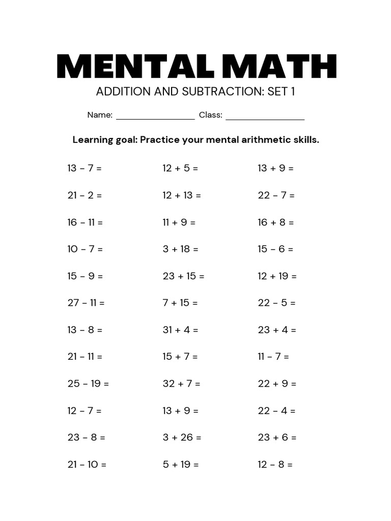 Learning goal: Practice your mental arithmetic skills.