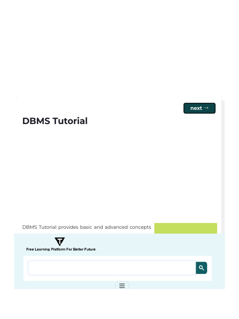 Our DBMS Tutorial is designed to help beginners and professionals.