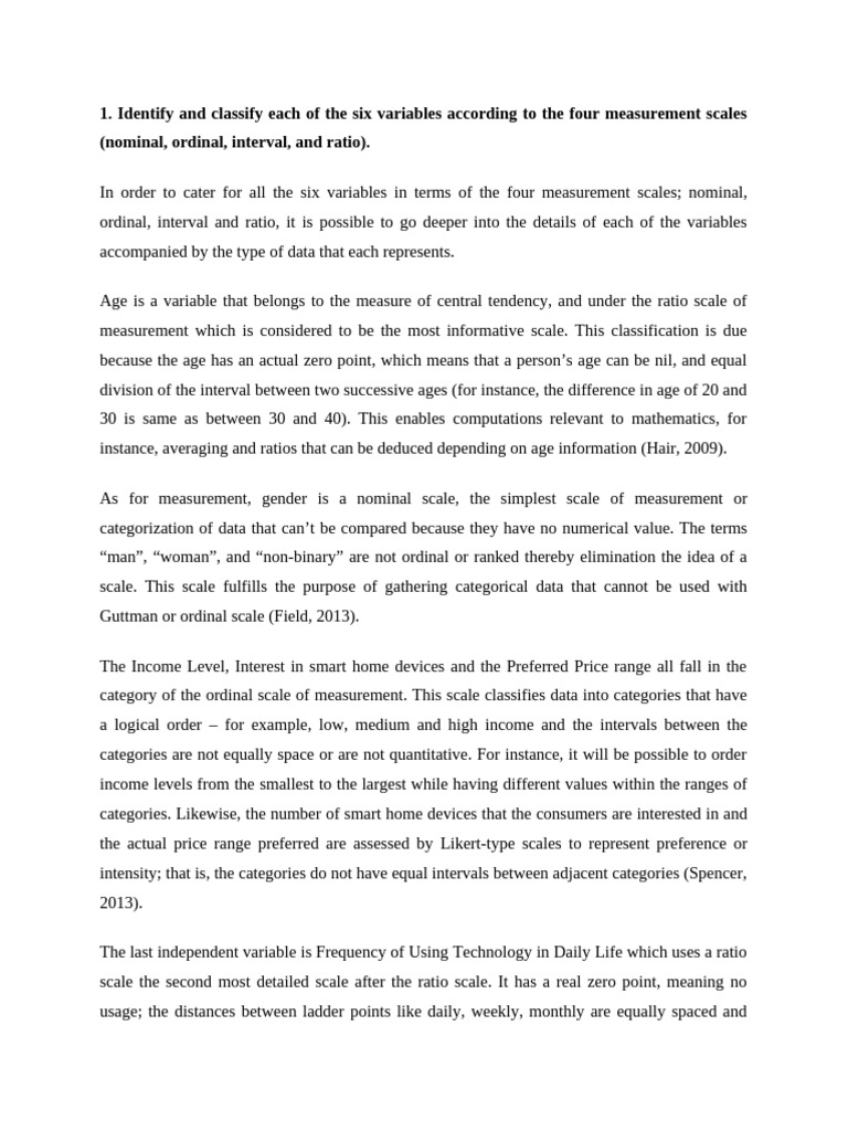 Identify and classify each of the six variables according to the four measurement scales