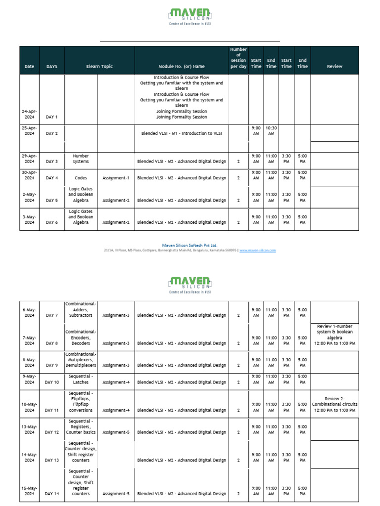 2024 DAY 3 systems Blended VLSI - M2 - Advanced Digital Design 2 AM AM PM PM
