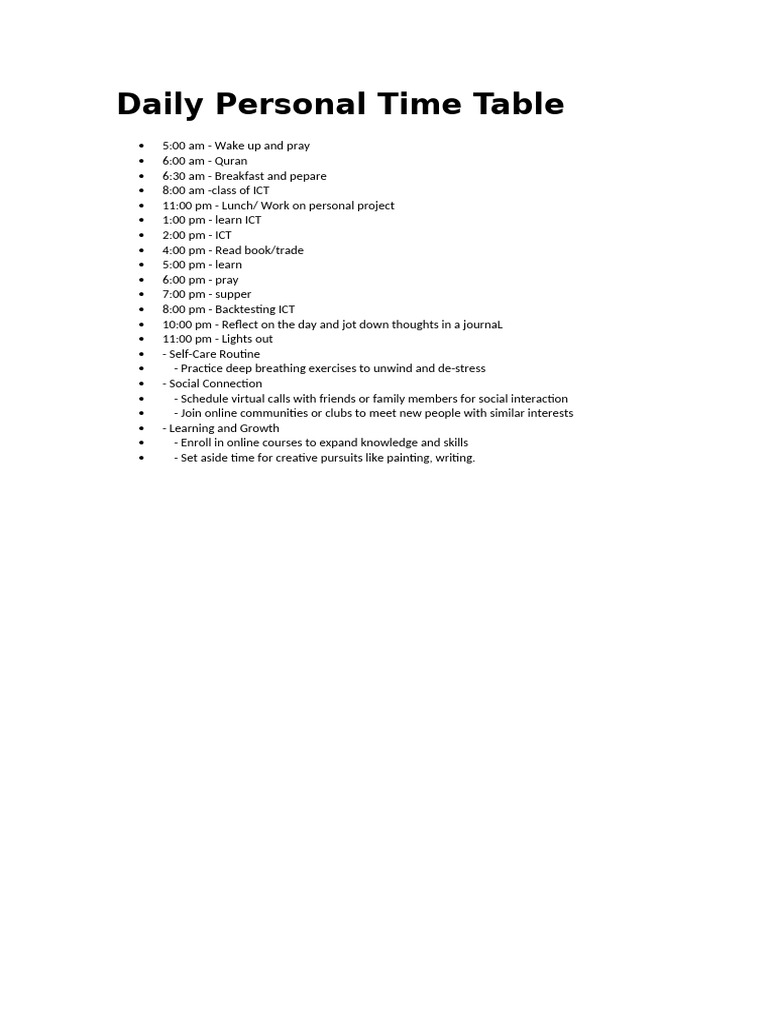 Daily Personal Time Table