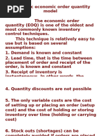 There are a number of important assumptions and formulae related to the EOQ that you should note.
