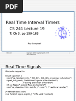 The existing interface, setitimer(ITIMER REAL, value, ovalue), sets the process's real-time interval timer to value->it value, putting the former contents into ovalue if ovalue is not NULL. The timer decrements in real time, causing a SIGALRM when it reaches zero. If value->it interval was not zero, the timer reloads with that value, otherwise it stops. The new interface, setitimer(ITIMER MULTIREAL, value, ovalue), behaves similarly, but with the following di erences: ovalue must not be NULL; it must point to a struct itimerval. If value->it value is not zero, and ovalue->it value is f-1, -1g, this is a create-new-timer operation. ovalue->it interval must already be set to an arbitrary user-chosen \label" for the new timer. ovalue->it value will be overwritten with a kernel-chosen \handle" for the timer. The timer will be initialized with value. If value->it value is not zero, and ovalue->it value is not f-1, -1g, this is a reset-existingtimer operation. ovalue->it value is interpreted as a timer handle, and ovalue->it interval must already be set to an arbitrary user-chosen label, which may di er from the existing timer's current label. The existing timer is removed from the expired timer queue (see getitimer()) if necessary, and its value and label are overwritten with value and ovalue->it interval. As with ITIMER REAL, ovalue is overwritten with the former value of the timer. If the handle in ovalue->it value did not refer to an existing timer, -1 is returned and errno is set to EINVAL. If value->it value is zero, this is a cancel-timer operation. value->it interval and ovalue->it interval are ignored. ovalue->it value is interpreted as a timer handle. If the handle is valid and the timer exists, it is destroyed, and its nal value is stored in ovalue. Otherwise, -1 is returned and errno is set to EINVAL. Note that timers in the expired queue (see getitimer()) are still considered to exist.