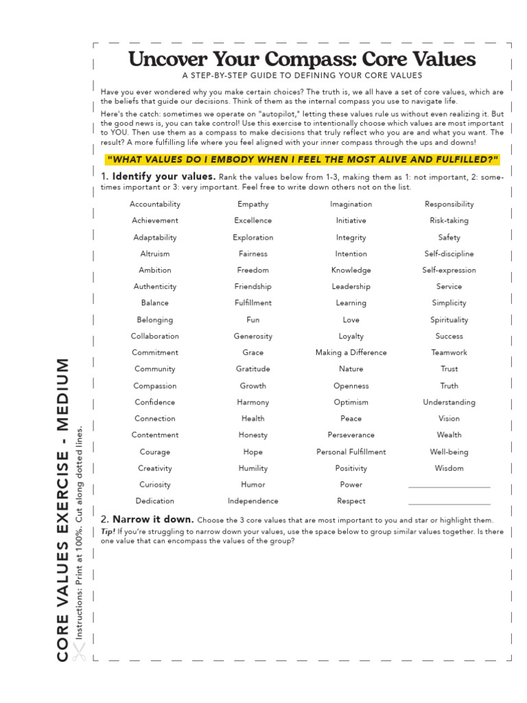 CORE VALUES EXERCISE - MEDIUM