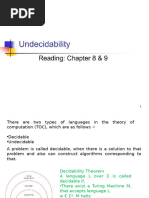 Undecidability; the Church-Turing Thesis The Church-Turing thesis: A Turing machine that