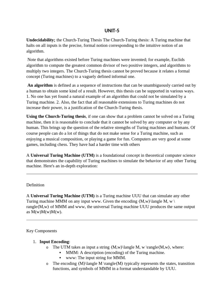 rangle⟨M,w⟩ of MMM and www, the universal Turing machine UUU produces the same output