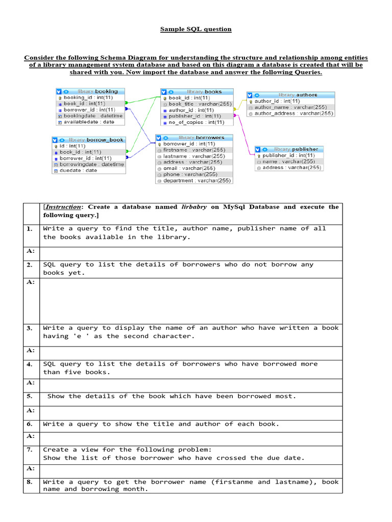 Consider the following Schema Diagram for understanding the structure and relationship among entities