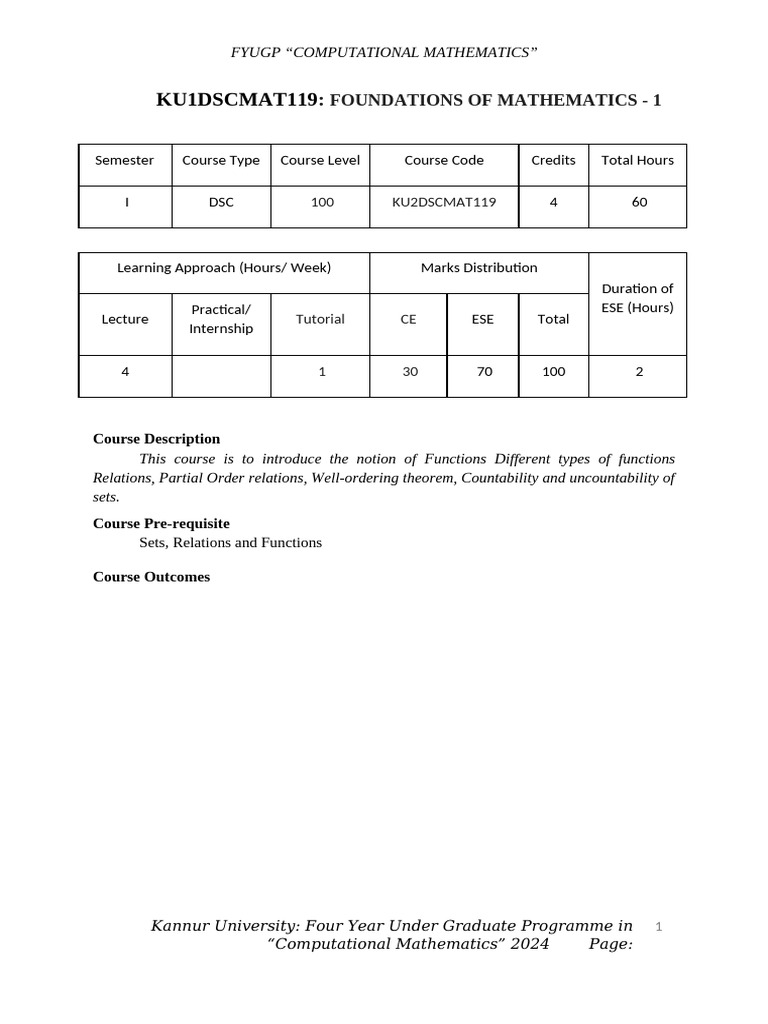 KU1DSCMAT119: FOUNDATIONS OF MATHEMATICS - 1