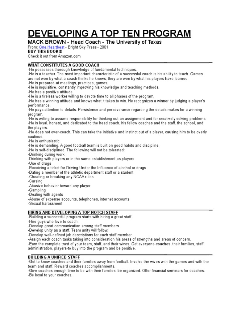 -Earn the complete trust of your team, staff, and their wives. Get everyone-coaches, their families, staff