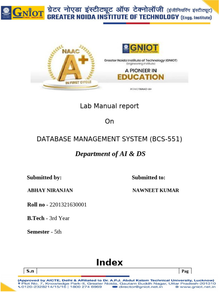 DATABASE MANAGEMENT SYSTEM (BCS-551)