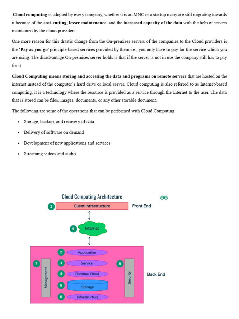 Cloud Computing means storing and accessing the data and programs on remote servers that are hosted on the