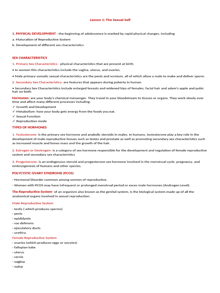 1. Primary Sex Characteristics - physical characteristics that are present at birth.