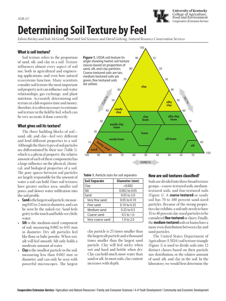 and identify what texture class the soil high potential for leaching, low nutrient determination of the soil texture allows