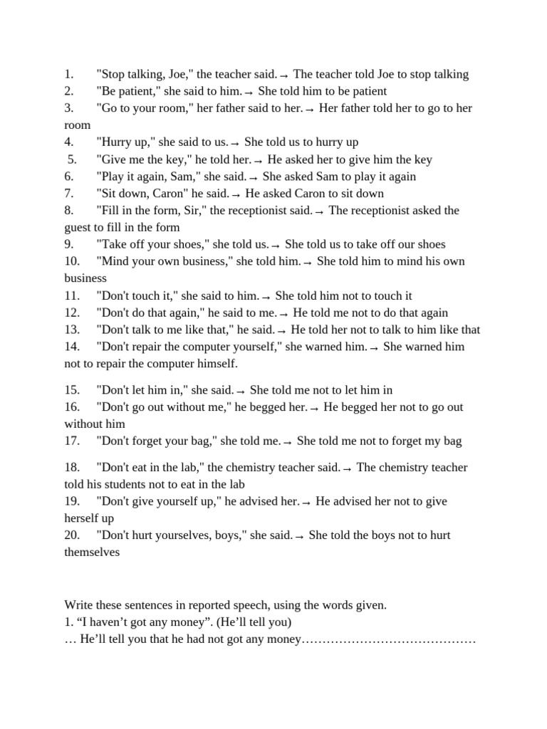 3. "Go to your room," her father said to her.→ Her father told her to go to her