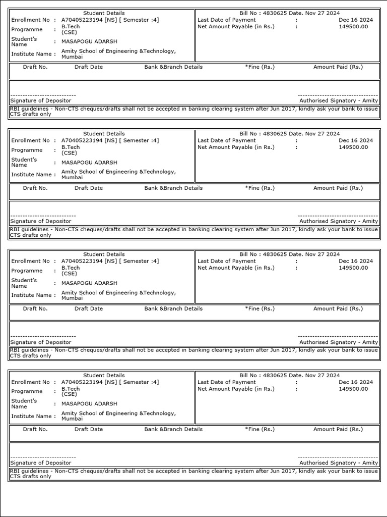 Enrollment No : A70405223194 [NS] [ Semester :4] Last Date of Payment : Dec 16 2024